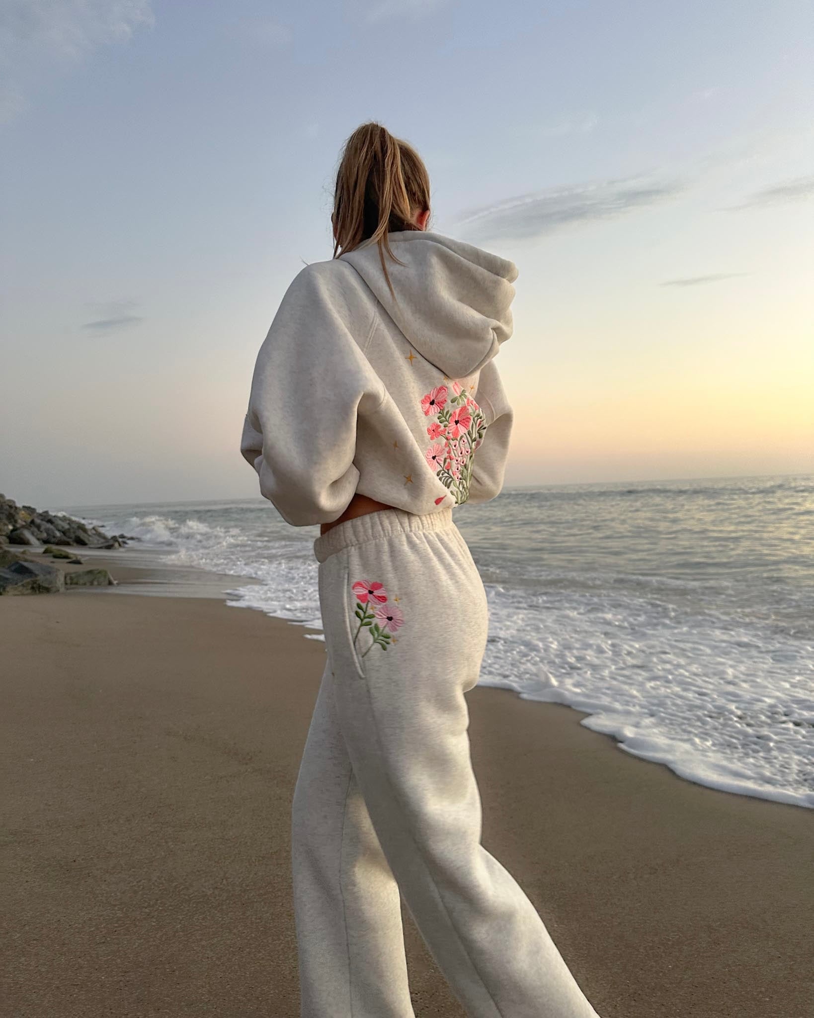 We like matching these sweatpants to our "Gift Giving" Hoodie in Heather Gray but also love mixing and matching. These pants will match any of the heather gray hoodies from Dandy.