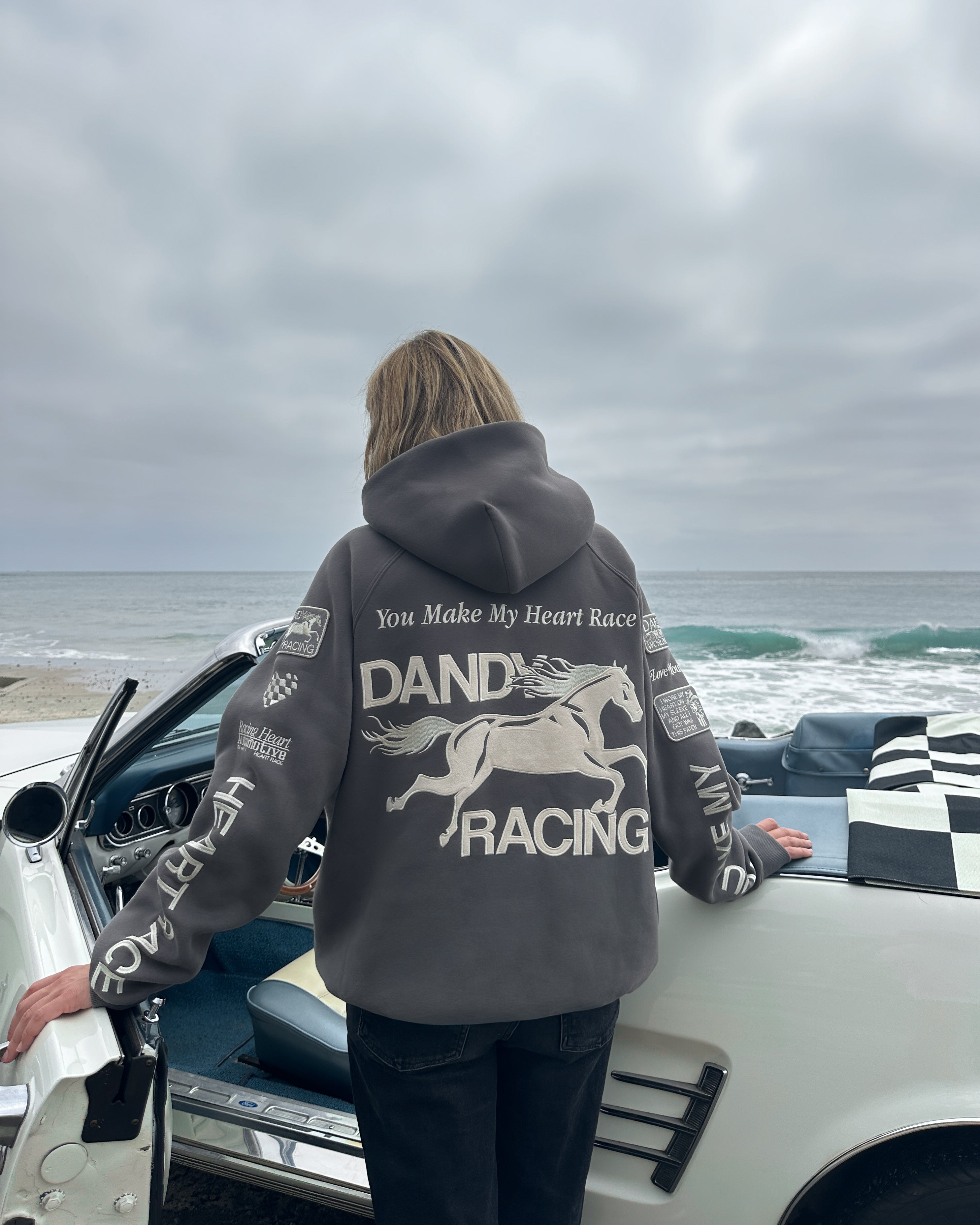 "Racing Heart" Oversized Lux Hoodie in Dark Gray